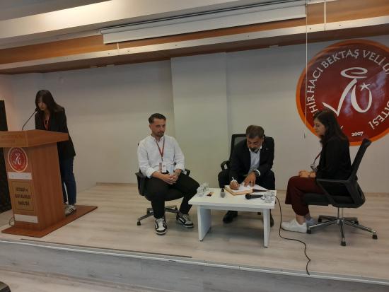 15 Ekim 2025 çarşamba günü Fakültemizde, Üniversitemiz Kamu Yönetimi Topluluğu tarafından organize edilen konuşmacı olarak Ürgüp Belediye Başkanı Ali Ertuğrul BUL'un katıldığı Yerel Yönetimler ve Sosyal Belediyecilik Anlayışıyla Ürgüp konulu etkinlik düzenlendi. Ürgüp Balediye Başkanı Ali Ertuğrul BUL, belediye başkanı olması ile ilgili süreç ve belediye bünyesinde gerçekleştirdikleri faaliyetler hakkında öğrencilerimize bilgi vermiş sonrasında da öğrencilerimizin sorularını cevaplandırmış olup Kamu Yönetimi Topluluğunun hatıra defterine duygu ve düşünceleri kaleme almıştır. Etkinlik sonunda Fakültemiz Dekan Yardımcısı Dr. Öğr. Üyesi Erdem Selman DEVELİ tarafından kendisine Teşekkür Belgesi takdim edilmiştir.