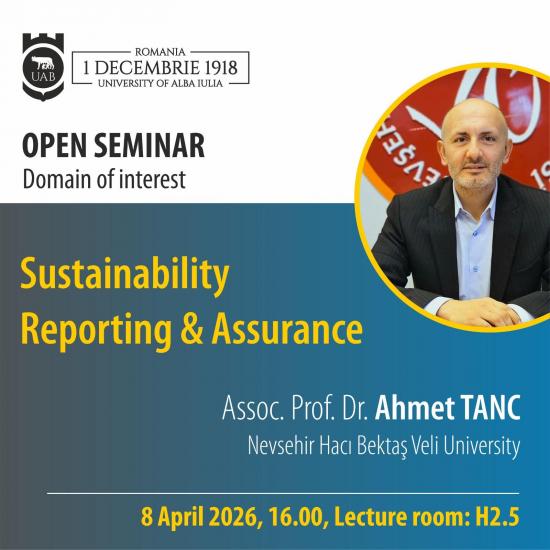 Doç. Dr. Ahmet TANÇ, ilgili kapsamda “1 Decembrie 1918” Alba Lulia Üniversitesi İktisat Fakültesi Finans-Muhasebe bölümünde ders vermiştir. Lisans ve yüksek lisans öğrencilerinin yanı sıra bölüm öğretim elemanlarının da katıldığı derslerde Doç. Dr. Ahmet TANÇ “Sustainability Reporting & Assurance” başlığı altında Avrupa Birliği ve Türkiye’deki sürdürülebilirlik raporlaması uygulamaları ve sürdürülebilirlik raporlarının güvence denetimleri yaklaşımları hakkında karşılaştırmalı bir sunum gerçekleştirmiş ve katılımcıların soruları yanıtlanarak farklı ülke uygulamalar tartışılmıştır.