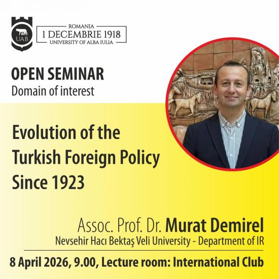 Doç. Dr. Murat Demirel ise, ilgili üniversitenin tarih bölümünün davetlisi olarak “The Evolution of Turkish Foreign Policy Since 1923” başlığı altında Türk Dış Politikası hakkında dersler vermiştir. Lisans ve lisansüstü öğrencilerin katıldığı oturumlarda Türkiye ile Romanya arasındaki ikili ilişkiler konuşulmuş ve güncel Türk dış politikası hakkında tartışmalar yürütülmüştür.