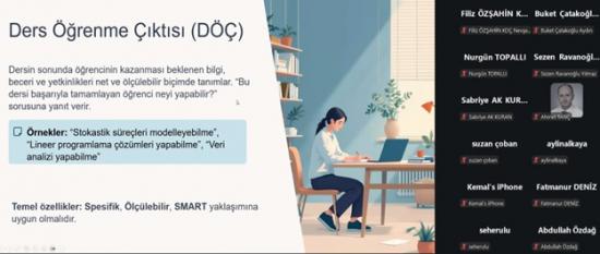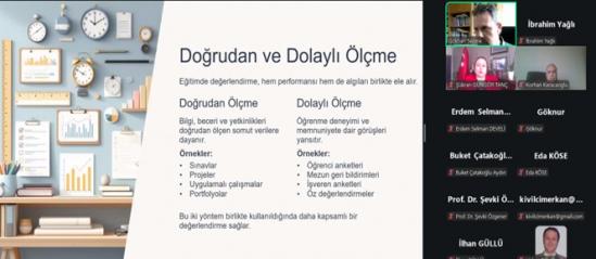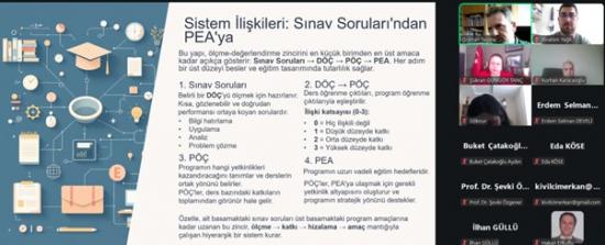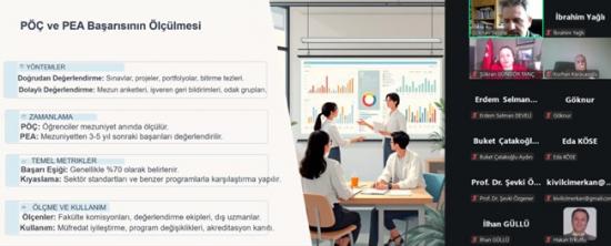 Toplantıda, ders öğrenme çıktıları ile program öğrenme çıktıları arasındaki ilişki, bu çıktılara ulaşma düzeyinin nasıl ölçüleceği ve değerlendirme süreçlerinde kullanılabilecek yöntemler ele alındı. Akreditasyon sürecinde kalite güvencesinin sağlanmasına yönelik ölçme ve değerlendirme mekanizmalarının önemi üzerinde duruldu.